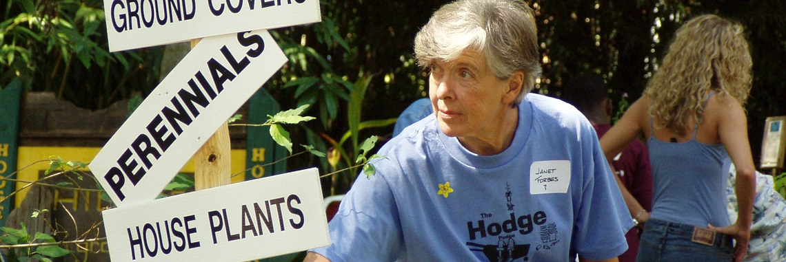 Hilltop's on-site Hodge Podge Nursery is an outgrowth of Mr. Emory Smith's philosophy of bringing people and plants together. From its humble beginnings as a quiet corner at our annual October plant sale (now dubbed PlantFest!), Hodge Podge has literally "blossomed" into an all-volunteer mini-nursery operation that boasts upwards of 6,000 plants representing over 600 different species. Tucked into a shady nook near Mr. Smith's old home, the nursery has its own irrigation system, a greenhouse and homemade tables to accommodate our stash of propagated, purchased and pass-along plants, all lovingly tended by a notoriously spunky mix of dedicated volunteers.